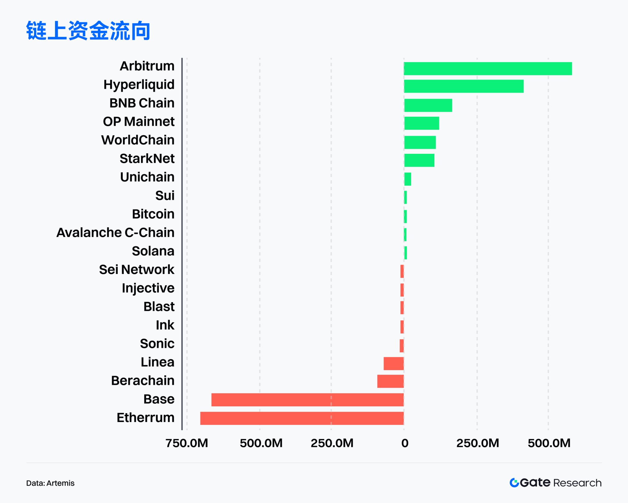 公链资金流向分化:Arbitrum 吸金领先,以太坊与 Base 资金大幅外流