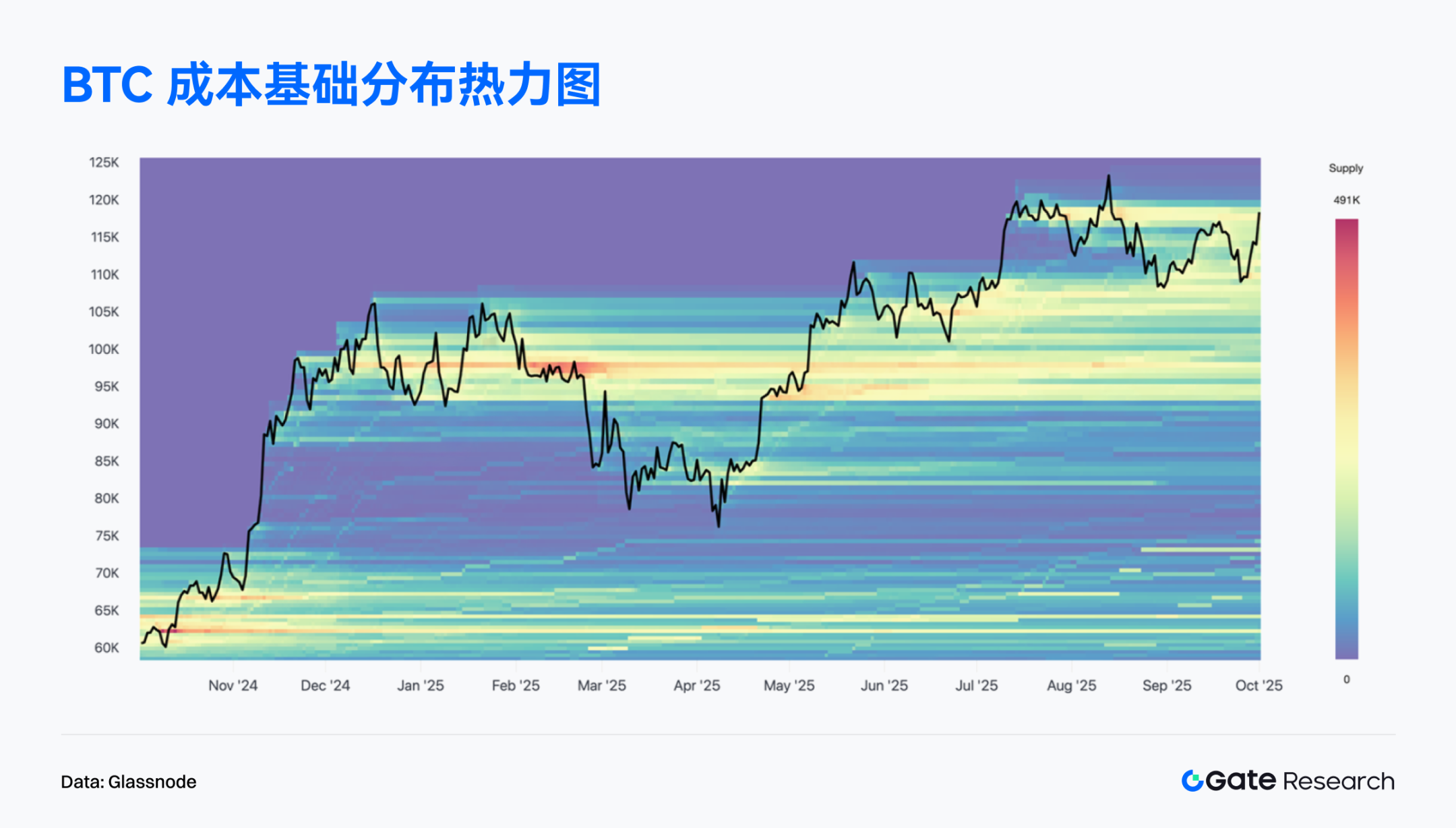 在资金流入趋缓、需求动能减弱的背景下,链上供需结构与投资者持仓行为成为判断后市的关键。本文将聚焦三大链上指标:成本基础与风险承压水平、短期持有者实现价值比率(STH RVT)、长期持有者净头寸变化,透过交叉观察,剖析当前高位区间的筹码分布、资金承接能力与潜在风险,为后续行情研判提供链上视角。