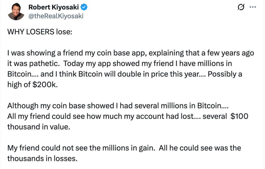 《富爸爸穷爸爸》作者:当前持有数百万美元的 BTC,预测其价格今年将翻倍至 20 万美元