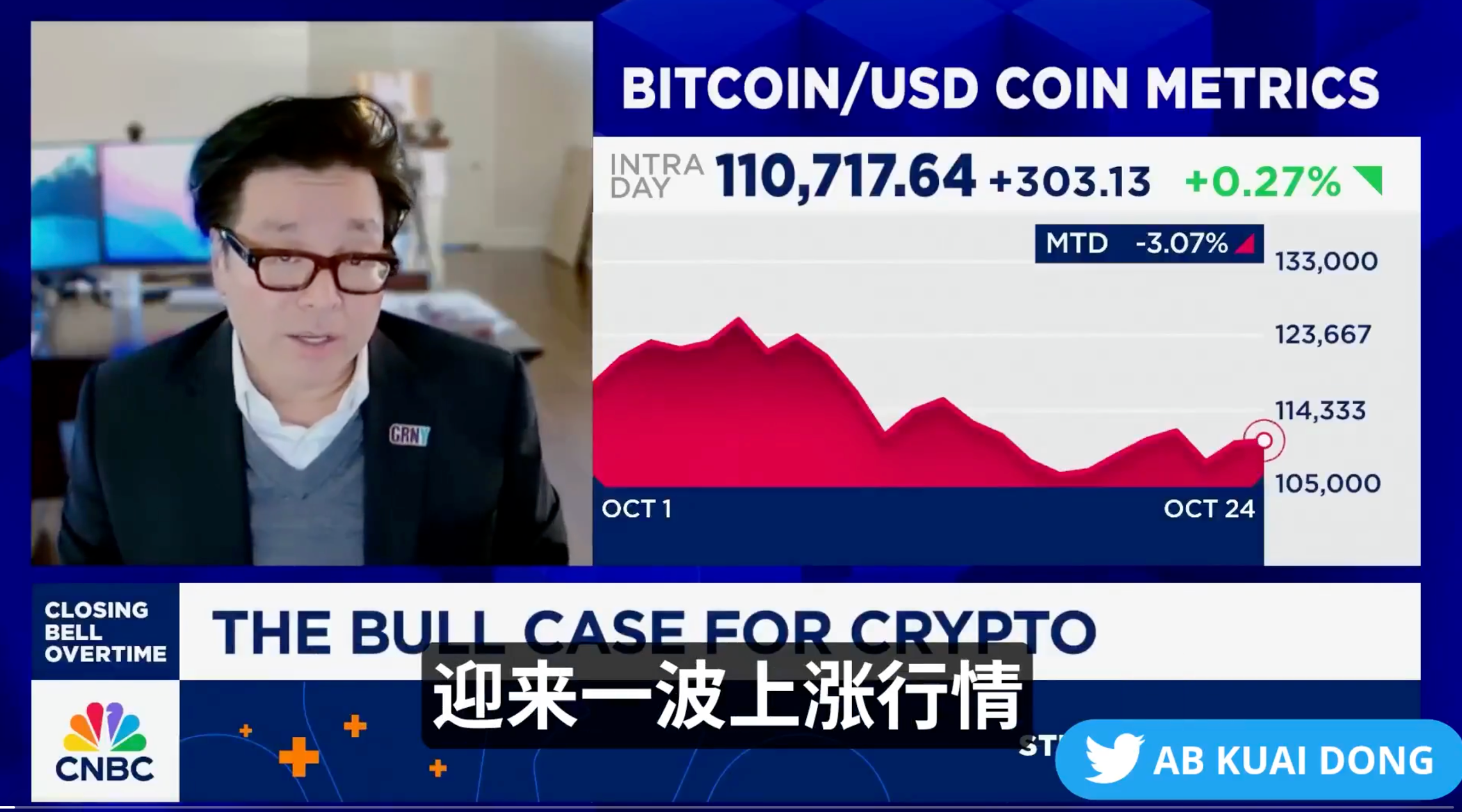 Tom Lee:认为年底前仍有一波上涨行情,比特币和以太坊在技术面上都在转向积极态势