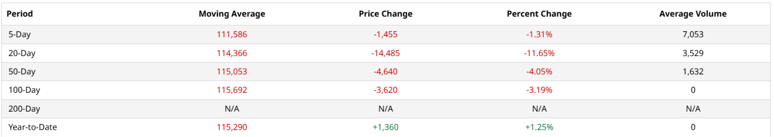 MA50(50 日均线):$115,053