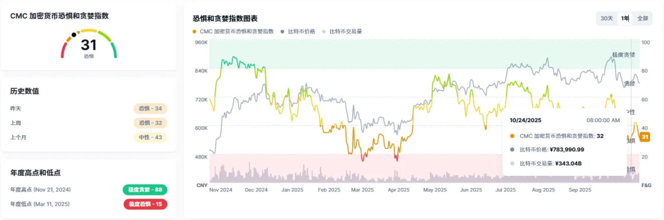 市场情绪指数 31,山寨指数 28,均处于低位。