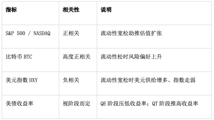 Liquidity ↑ = Fed 资产↑ + TGA↓ + RRP↓