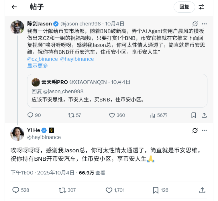 2025 年 10 月,一个名为"币安人生"的中文 Meme 币在 72 小时内从零冲至 1.5 亿美元市值,成为加密史上首个由非英语文化主导的大型造富运动。这个源于抖音网红户晨风"苹果安卓论"的谐音梗,通过"开币安汽车、住币安小区、享币安人生"的口号,精准捕捉了中文社区对阶级跃迁的集体焦虑。10 月 7 日上线 Binance Alpha 后,超 10 万投资者涌入,BSC 日交易量飙升至 60.5 亿美元超越 Solana。链上车头一度浮盈超 600 万美元,其中包括 0xSun、冷静、王小二、深大高材生、镭射猫等。