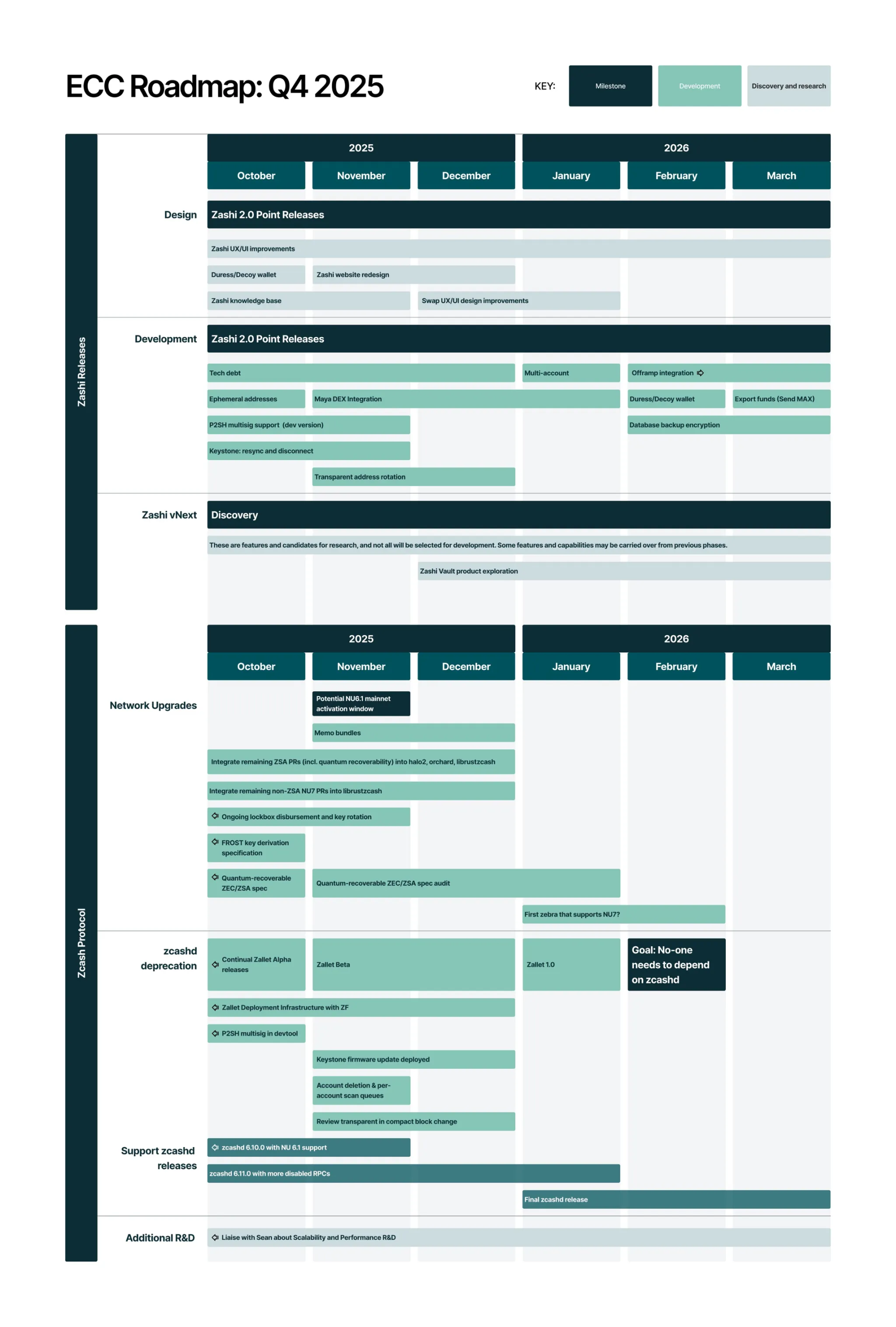 Orchard 协议升级、ECC 2025 年 Q4 路线图确实显示 ZEC 非空气项目。但关键问题:技术升级未转化为屏蔽交易增长,70% 交易仍透明。zk-SNARKs 技术领先≠市场采用,ZEC 的挑战不是技术能力,而是在监管压力下实现真实用户增长。