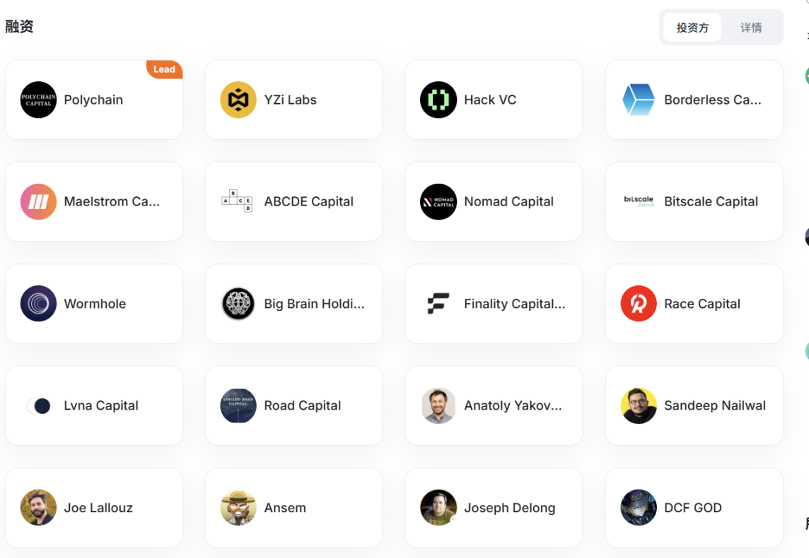 - Pre‑Seed 轮(2024 年):金额未公开,由 Solana 联合创始人 Anatoly Yakovenko 和 Polygon 联合创始人 Sandeep Nailwal 等天使投资者支持。