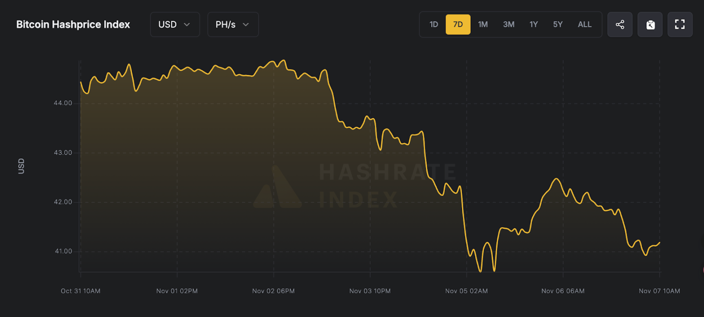 11 月 01 日:本周高点 44.79 美元 /PH/s/ 天