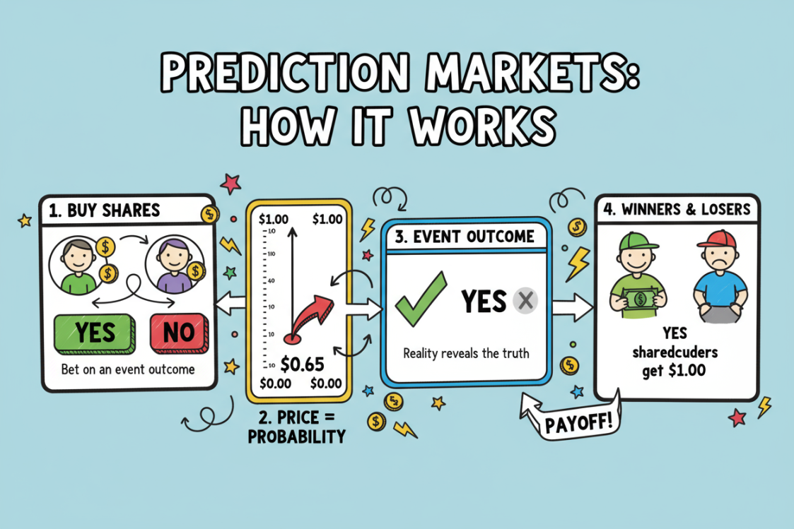 预测市场是一种通过市场机制来聚合信息、预测未来事件结果的平台。其核心运作方式是,用户可以就某一特定未来事件(如选举结果、经济数据发布、体育赛事胜负等)的各种可能结果,买卖对应的“结果份额”。这些份额的价格在 0 到 1 美元(或其他货币单位)之间浮动,实时反映了市场参与者对该结果发生可能性的集体判断。当事件结果最终确定,持有正确结果份额的用户将获得 1 美元的回报,而持有错误结果份额的则价值归零。