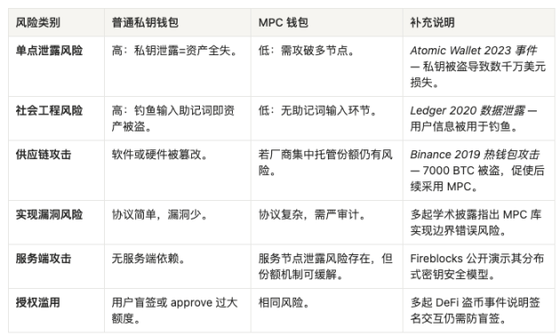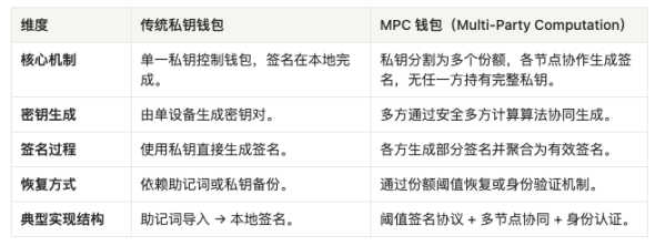 - 传统私钥钱包:用户完全掌握私钥或助记词,安全性取决于个人操作。自主安全、透明度高,但“单点泄露即资产全失”。