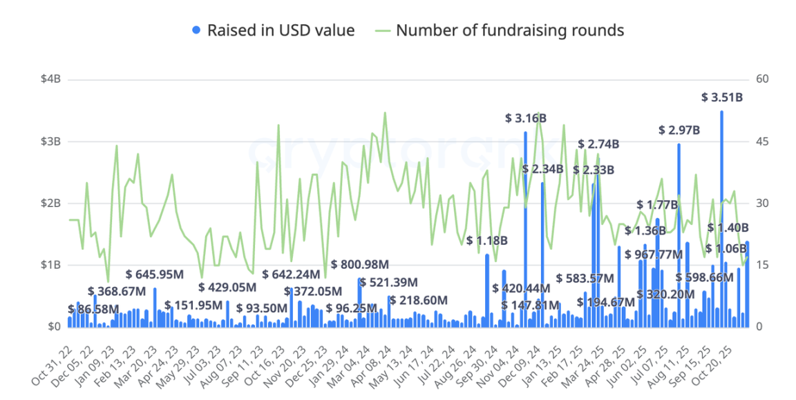 一级市场呈现出巨大的结构性分化:纯应用类项目融资遇冷,而焦点高度集中在合规交易所与新兴概念基础设施的扩张上。Kalshi 完成 10 亿美元融资,估值飙升至 110 亿美元,获得 Sequoia、a16z、Paradigm 及 Google 旗下的 CapitalG 参投。与此同时,Kraken 确认在 Pre-IPO 轮中再次获得 Citadel 的 2 亿美元战略投资,两轮累计 8 亿美元,估值达到 200 亿美元。除了引入传统做市商巨头背书,其近期收购 Small Exchange 意在进军美国本土合规衍生品市场,野心不仅在于现货,更在于成为全品类的金融巨头。