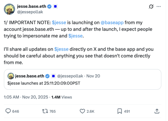 整体来看,JESSE 发币事件更像是一次“基础设施与产品叙事之间张力”的集中显现:一方面,Base 希望通过创作者币和内容经济,把 Base App 打造成承载“链上身份与关系”的超级入口;另一方面,Flashblocks 带来的确认速度红利,在缺少额外公平性设计的前提下,又被高频参与者放大为一次针对散户流动性的套利演练。后续值得持续观察的,不是 $JESSE 价格本身,而是 Base App 用户规模与活跃度能否因此获得持续提升,以及团队在发射规则、白名单保护、限价 / 拍卖机制等层面,是否会给出第二版设计,让“创作者经济 + 超快结算”从一次高风险实验,走向更可持续、更兼顾公平性的长期机制。