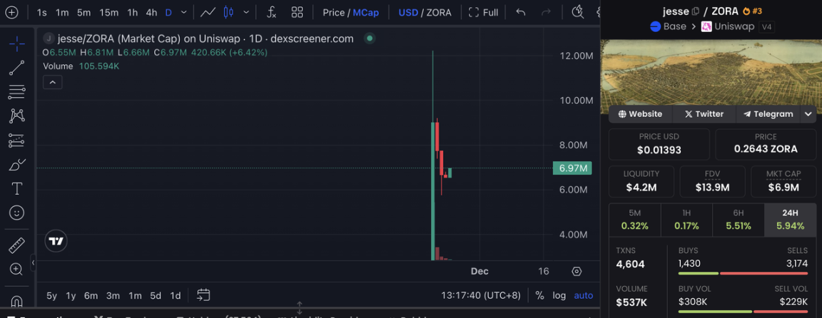 数据来源:https://dexscreener.com/base/0xc39acb3ce11ebcd3e1c5d67cdfb8707ab12674449fdab859327a8aabee03cd10