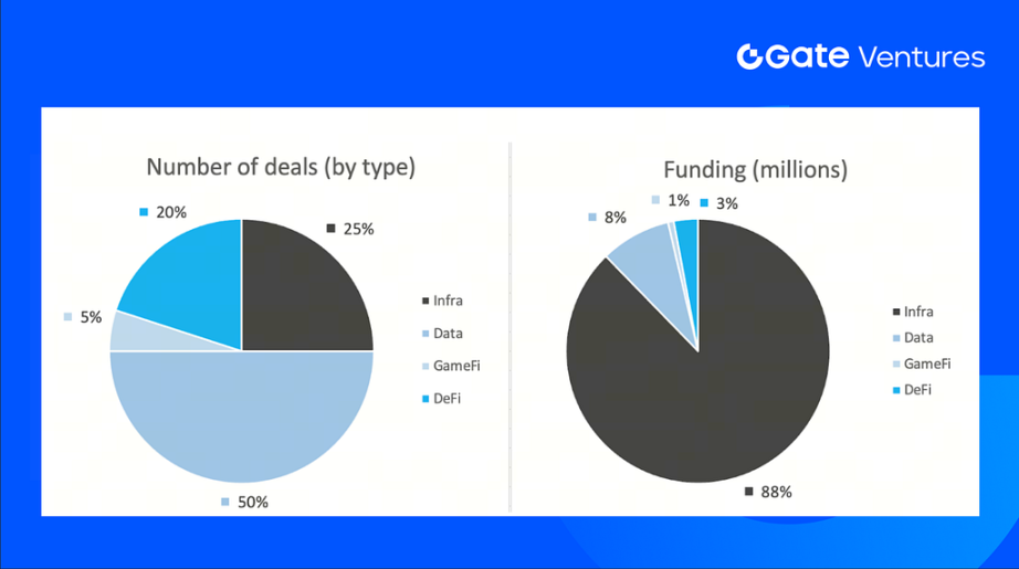 The number of deals closed in the previous week was 20, with Data having 10 deals, representing 50% of the total number of deals. Meanwhile, Infra had 5 (25%), GameFi had 1 (5%) and DeFi had 4 (20%).