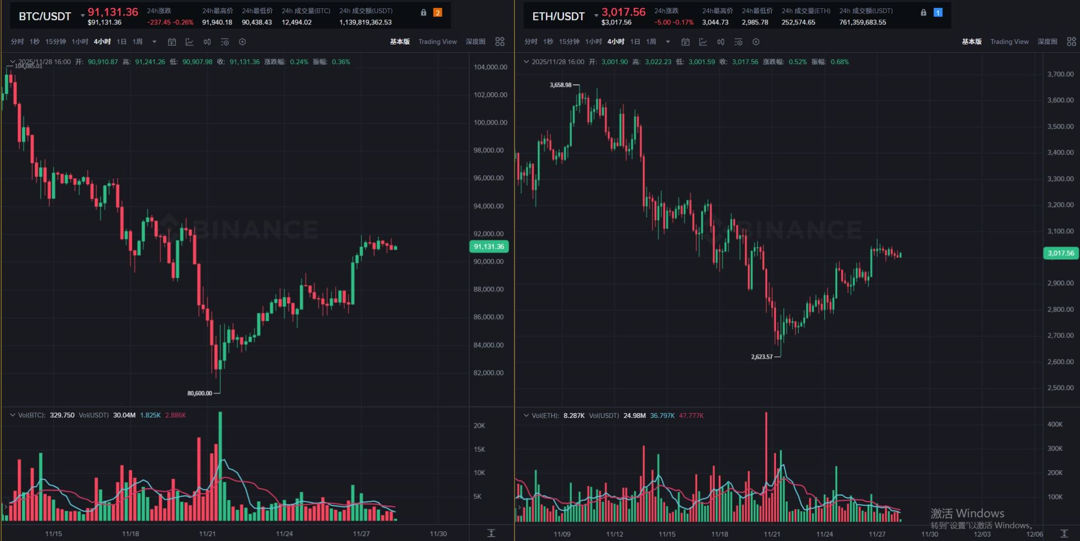 本周(11.22-11.28)以太坊 ETF 资金流动同样出现回温,单周净流入 2.9178 亿美元,以太坊价格也随之迎来一定幅度反弹。后续需关注下周以太坊 ETF 流入情况能否维持或进一步升温,以此判断以太坊反弹能否转化为反转行情。