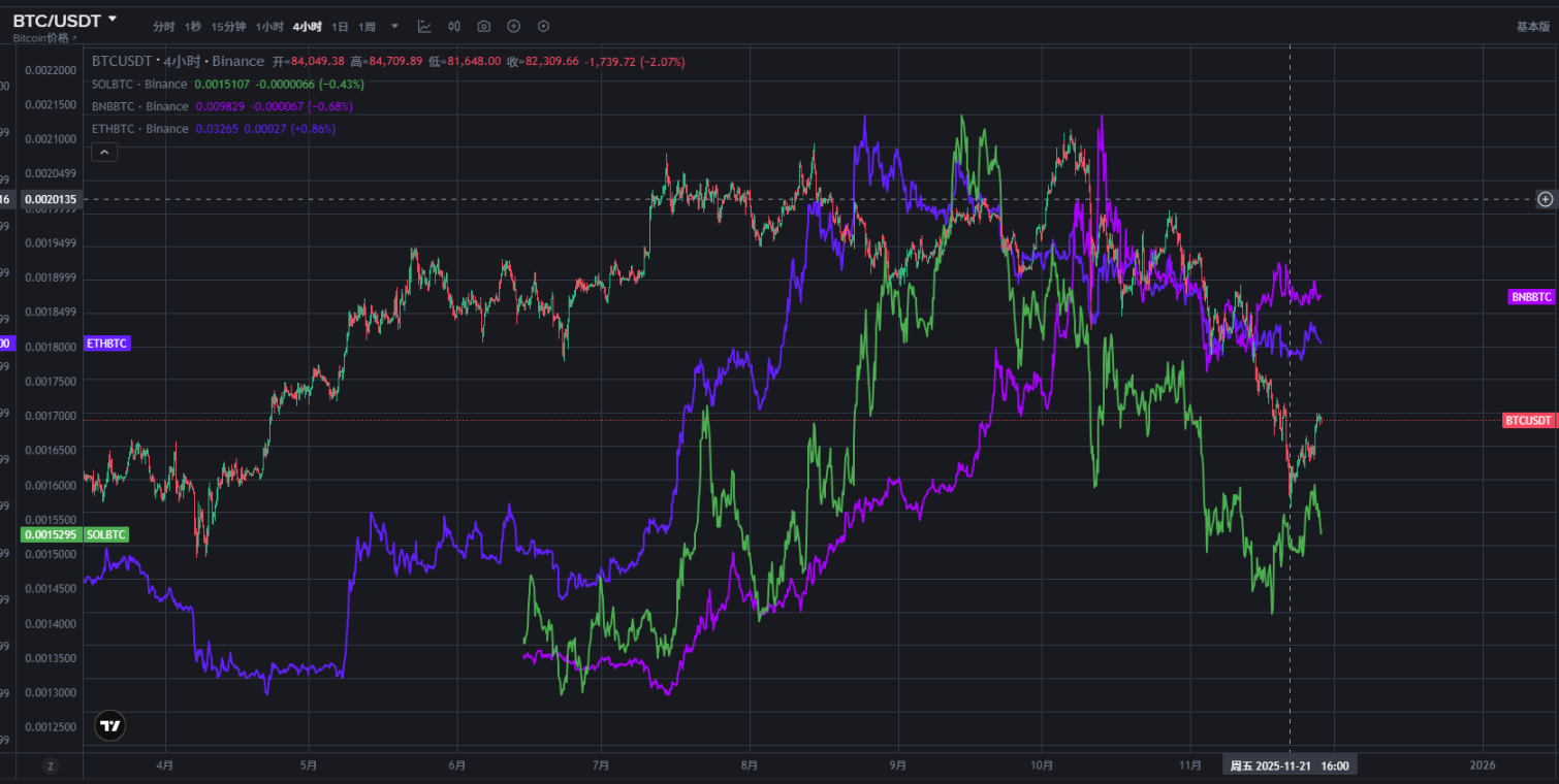 SOL/BTC、ETH/BTC、BNB/BTC 汇率:本周 BTC 震荡走高,从波动率来看,山寨币相对偏弱。SOL、ETH、BNB 等主流品