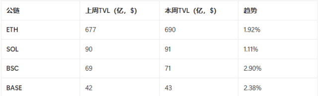 本周链上 TVL 小幅上涨,且涨幅低于价格上涨幅度。