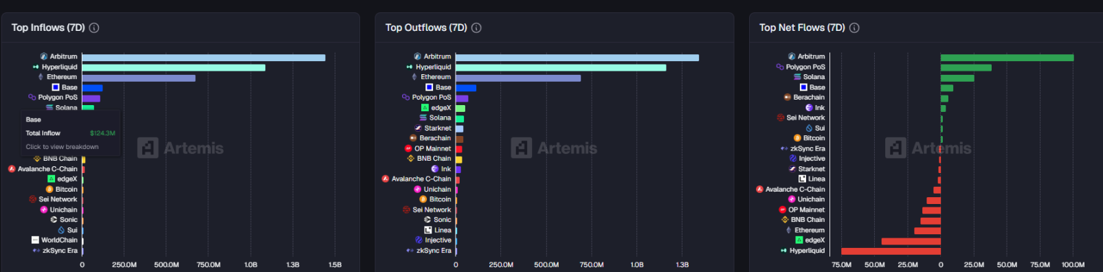 链上资产流向:本周链上 DeFi 桥接资产流向中,ARB 链净流入最多,Hype 链流出最多,市场主流链仍出现资金小幅流出,仅能说明市场情绪有所改善。稳定币方面,USDT、USDC 增发最多,USDE 大幅流出(主要因资金费套利收益平淡,资金持续撤出),CEX 流出仍是短期市场情绪不高的表现。
