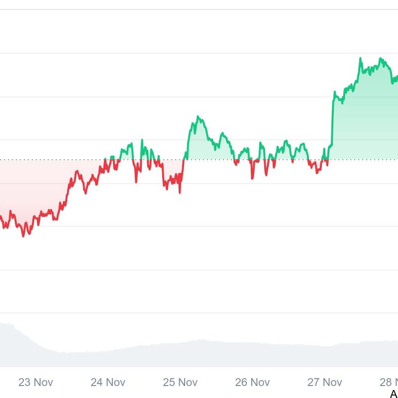 28 日比特币在 $91,000–$92,000 区间维持高位震荡,整体盘面趋稳。虽有小幅回踩动作,但低点均未跌破前一日突破位,但始终稳固在 $91,000 上方。说明市场承接力仍然强劲。整体表现为突破后的自然整理,市场氛围明显较前一周稳定。