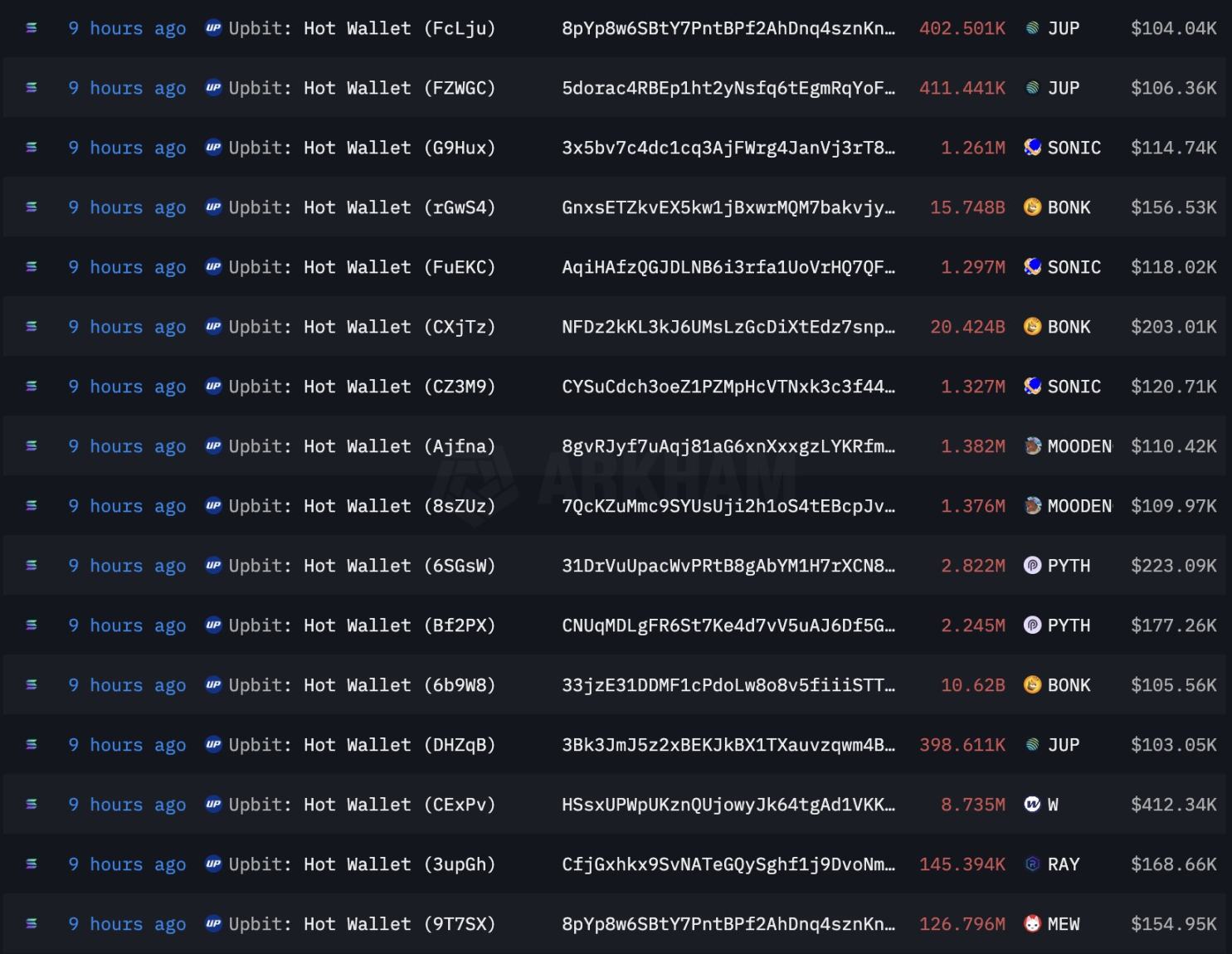 此次攻击目标明确,专门针对 Upbit 在 Solana 网络上的资产,涉及多种基于 Solana 的代币
