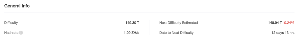 截至 12 月 5 日,全网算力达到 1.04ZH/s,挖矿难度为 149.30T。预计下一次难度调整将在 12 月 11 日进行,预估下跌 0.73%,调整后难度约为 148.22T。
