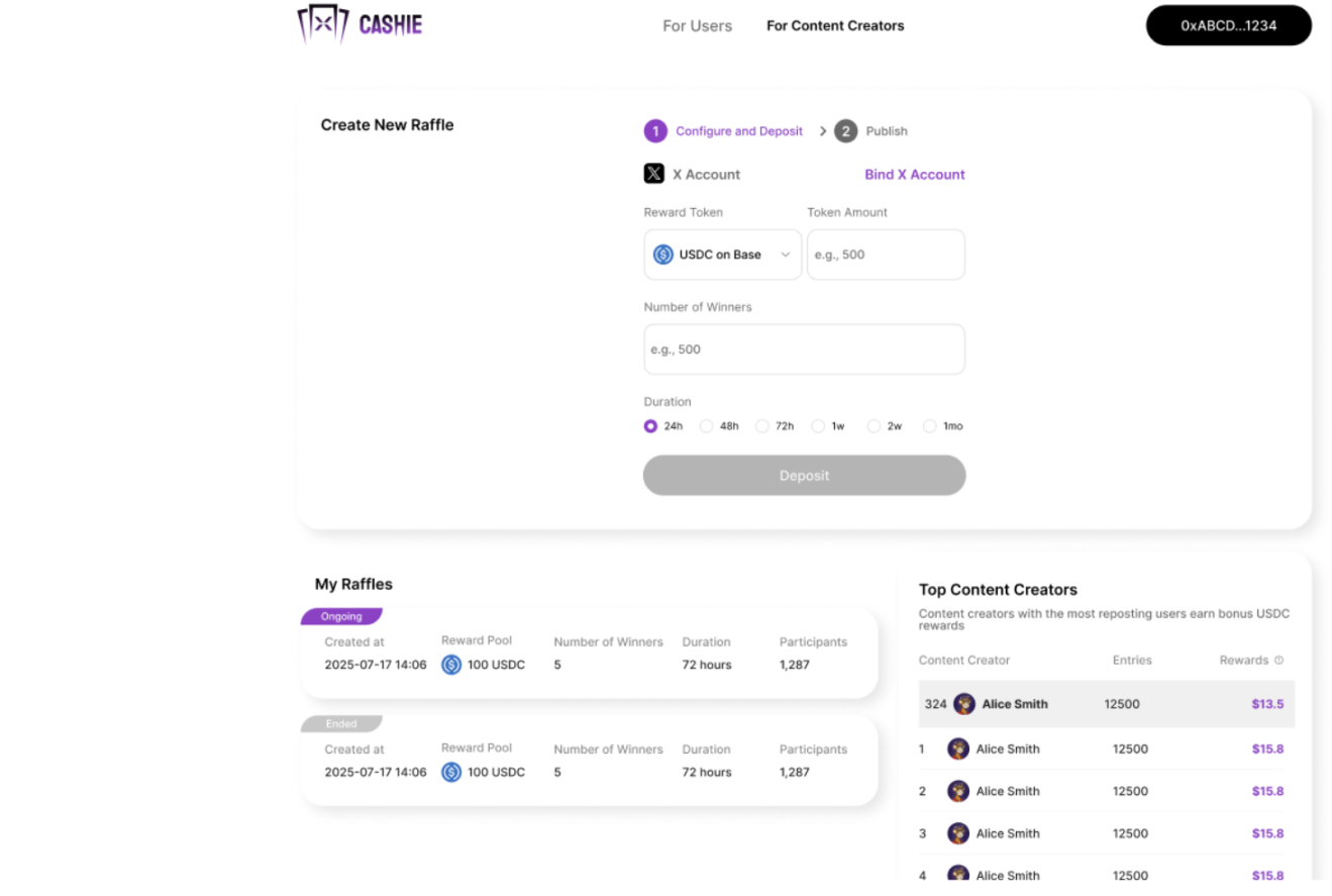 Cashie 会自动验证转发、关注以及所有参与条件;活动吸引的参与者越多,创作者的排名越高,可获得的激励也越多。