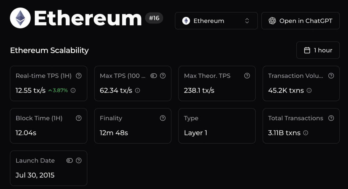 在执行层面,最直观的变化来自吞吐与成本曲线的重塑。Gas Limit 被提升至 6000 万,配合执行与数据路径上的优化,根据第三方测算,以太坊主网当前理论峰值 TPS 已可逼近 238 tx/s,是早期 ~15 TPS 的十余倍量级。对上游来说,这为 L2 结算腾出了更宽松的空间;对应用侧来说,从 Arbitrum 上的 RWA 基建,到 Base 上的 x402 支付,再到 MegaETH、游戏等高频交互场景,“在以太坊上做高频”的成本和拥堵预期被系统性压低,而不是只依赖偶发的“低费率窗口”。