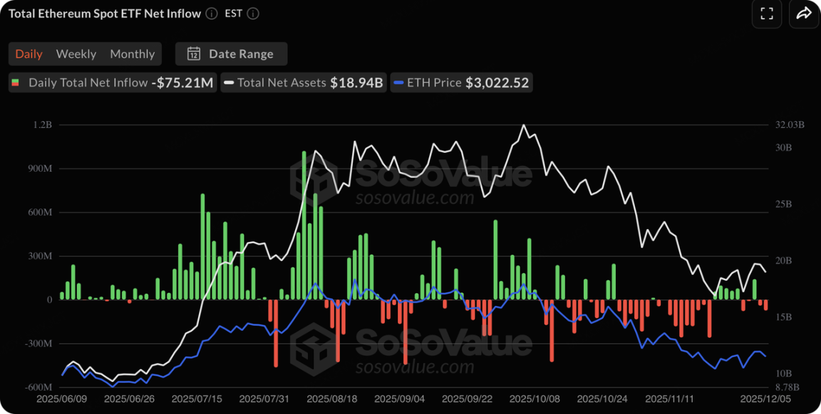 从数据来看造成这种脱钩的原因,更多是筹码结构的调整,而非 BTC 基本面的变化。造成这个结果的部分原因,可能是传统宏观对冲基金在年底止盈离场,进行年度调仓所导致。虽然价格出现回调,但我们可以看见在现货 ETF 的层面, 并未出现大规模的净流出。上周,资管巨头 Vanguard 首次允许客户在其券商平台上购买包括购买第三方管理的加密 ETF,例如贝莱德的产品 IBIT.US 等。这意味着长线资金可以更加方便的陆续进场。