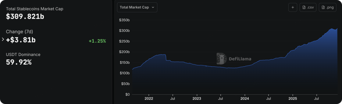 链上流动性方面,稳定币整体发行量在上周止跌回升,即使剔除了 USPD 新收录带来的增量,纯看法币美元稳定币,整体市场也还是在缓慢增加。但是另一方面,USDe 和 BUIDL 依然在持续萎缩,整体链上的另类稳定币仍然处于去杠杆的阶段。