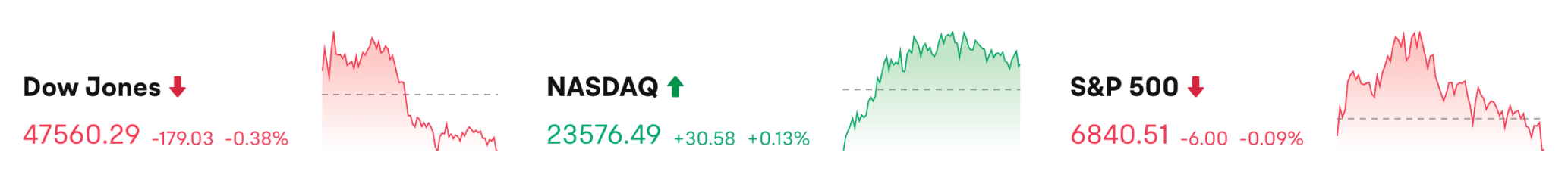 2、美股:道指跌 0.38%,标普 500 指数涨跌 0.09%,纳斯达克综合指数涨 0.13%。此外,英伟达(NVDA)涨跌 0.31%,Circle(CRCL)涨 5.86%,Strategy(MSTR)涨 2.89%。