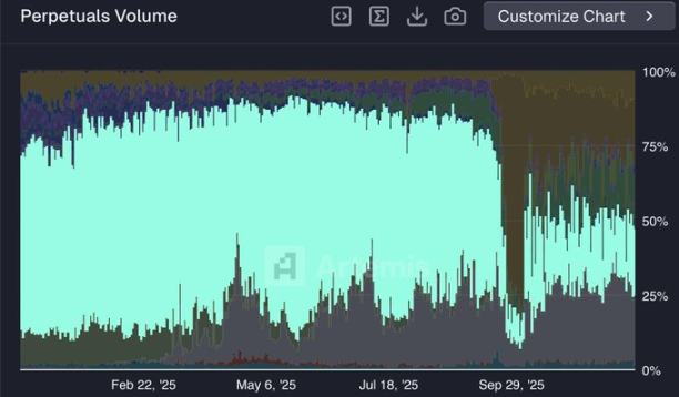 (根据 @artemis 数据统计的永续合约交易量市场份额)