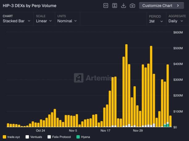 预计到 2026 年,HIP-3 市场的交易量将在 Hyperliquid 总交易量中占据显著份额。