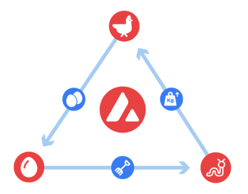 无聊猿是 NFT 圈跨到 Gamefi 圈的案例,有没有从 Gamefi 圈跨到 NFT 圈,建立起自带价值的 NFT 案例呢?目前看来还没有,不过有些项目开始有迹象了,比如 AVAX 上的雪崩鸡 Chikn,他家的模式也很简单,玩家拥有 chikn NFT,质押可以生产鸡蛋,获得代币 egg,质押 egg 的 LP,可以获得饲料 feed,feed 可以喂养 NFT,增加其体重获得更多 egg,以此循环。