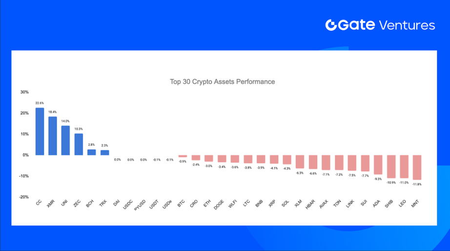 Across the top 30 assets, the market still recorded an average decline of 1.89%, with Canton Network, XMR, UNI, and Zcash among the few tokens posting gains.