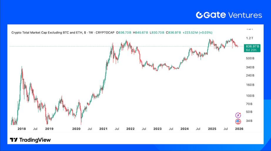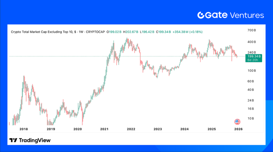 Total crypto market capitalization declined by 0.17%. Excluding BTC and ETH, market cap fell 1.59%, while the broader altcoin market excluding the top-10 experienced a sharper drop of 2.05%.