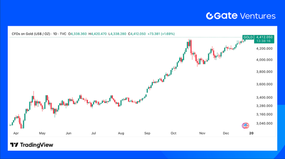 Gold broke $4,400/oz for the first time on Dec 22, with spot trading around $4,412 after hitting a new intraday record. Drivers cited include rate-cut expectations, a weaker dollar, geopolitical/trade tension hedging, and continued central-bank demand. (4)