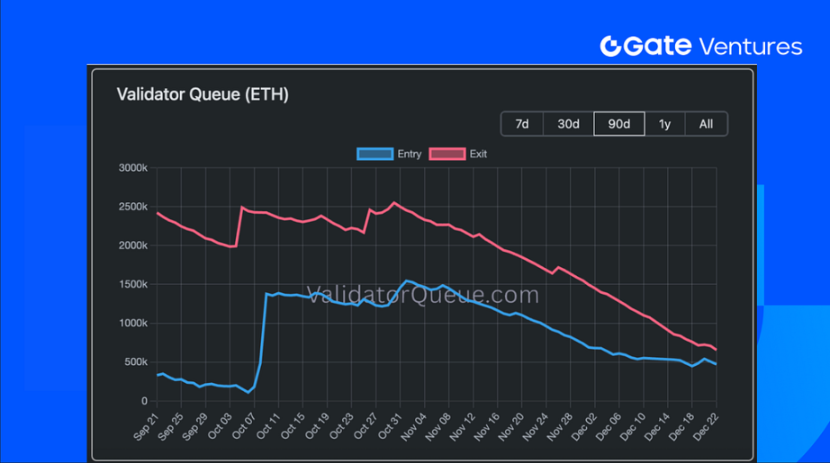 Hence, the gap between ETH validator exits and entries has narrowed to around 180k ETH, indicating a smaller net change in staked ETH and fewer large validators opting to exit. (7)