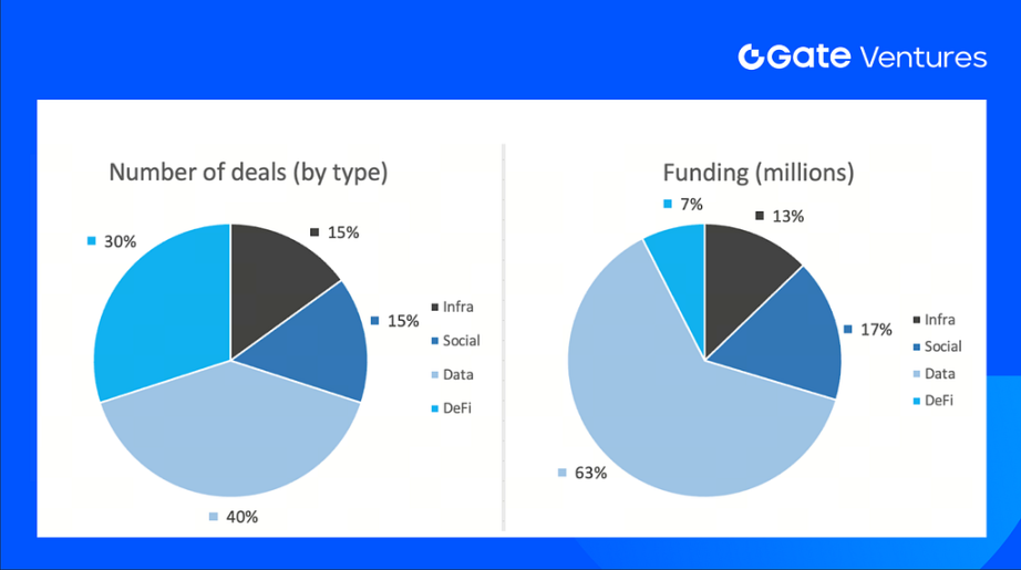 The previous week, 20 deals were closed, with Data accounting for 8, or 40% of the total. Meanwhile, Infra had 3 (15%), Social had 3 (15%) and DeFi had 6 (30%).