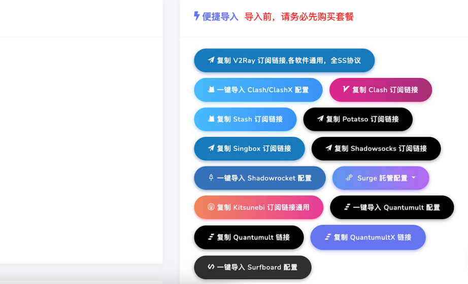 其实不用这么麻烦,你只需要像购买 VPN 一样,购买一个机场就能搞定,这个机场你以后可以几台手机共用,这样就不用买太多 VPN 了。