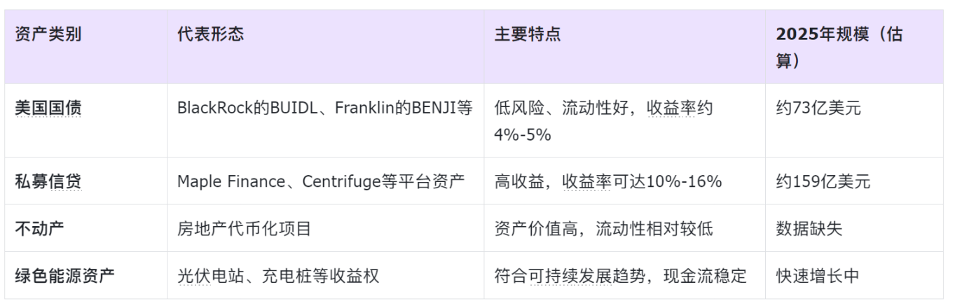 从全球实践看,RWA 的发展呈现出明显的“分层化”特征。最初阶段,市场主要关注美国国债等低风险资产的代币化;而到了 2025 年,资本开始更多流向私募信贷等高收益产品。