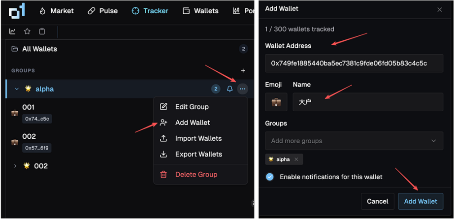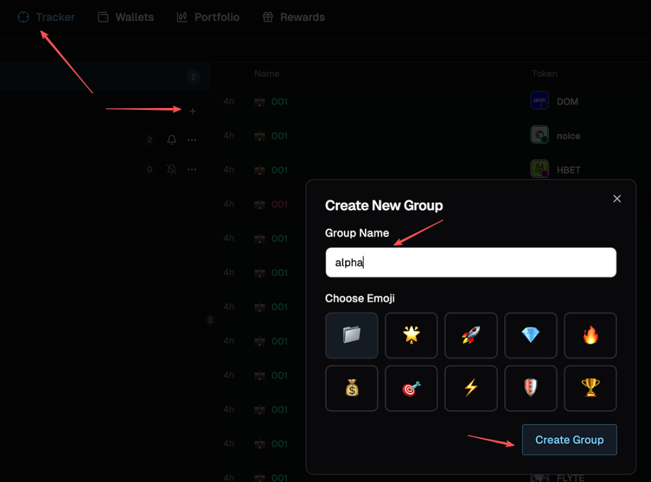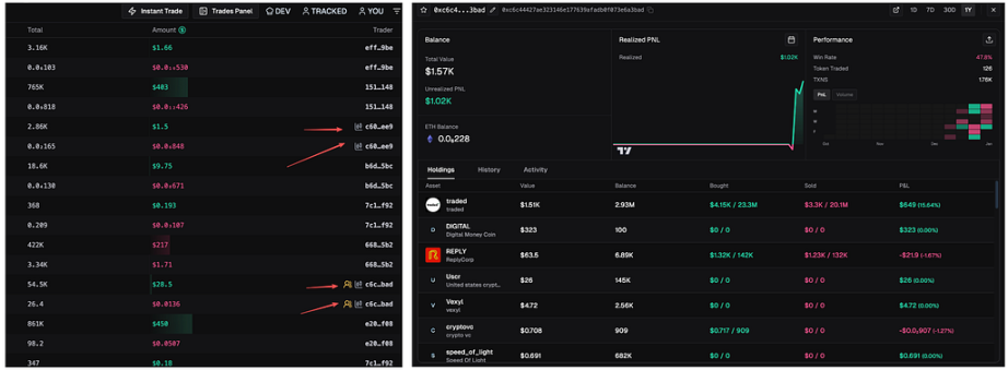 当你用上面的方法筛选出来一个 memecoin 后,可以去爬里面的大户钱包,然后添加到平台自带的 Tracker 中,追踪他们买了哪些币、胜率怎么样。