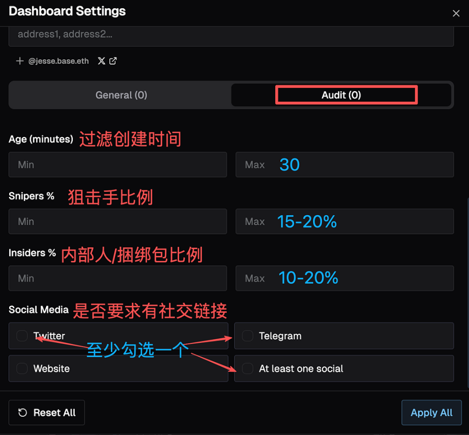 本文重点二:Audit Tab 参数(强烈推荐,用这个防 rug)