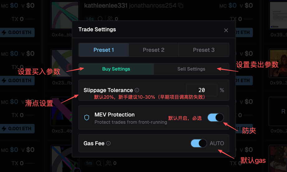 做好上面的设置后,就会出现符合你条件的 memecoin,点击就可以交易: