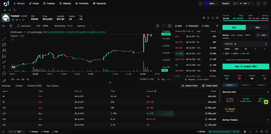 o1.exchange 是建立在 Base 的全品类交易终端(现货、合约、预测),2025 年 8 月 获 Coinbase Ventures 与 Alliance DAO 领投 420 万美元种子轮。