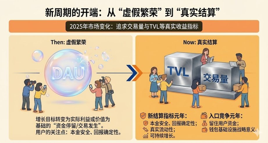 一句话概括 2025:它是“新结算指标元年”,也是“入口竞争元年”。当增长目标变成“资金停留 / 交易发生”的以实际利益或价值为基础导向,竞争自然地转向“谁更能把用户的资金相关行为留在自己的生态体系里”。