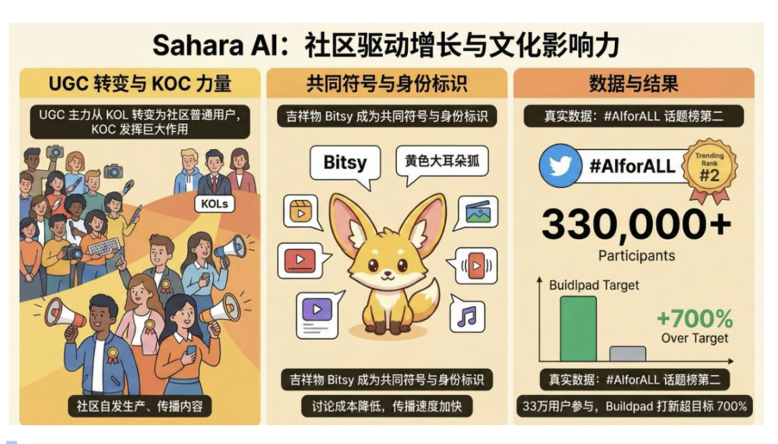 但 Sahara AI 也有一个遗憾:Sahara 的 UGC 活动能在市场上让社区点燃一个月,但是后面没有接上可持续的文化延展,热度掉了回去。 这是很多项目的通病,只会点火,不会添柴。Sahara 尽管已经向市场证明了文化能留住用户,但只有持续的文化输出和社区机制管理才能成为“宗教”防火墙来成为长期的护城河,TGE 后的文化延续一定要继续做,甚至得更用力。