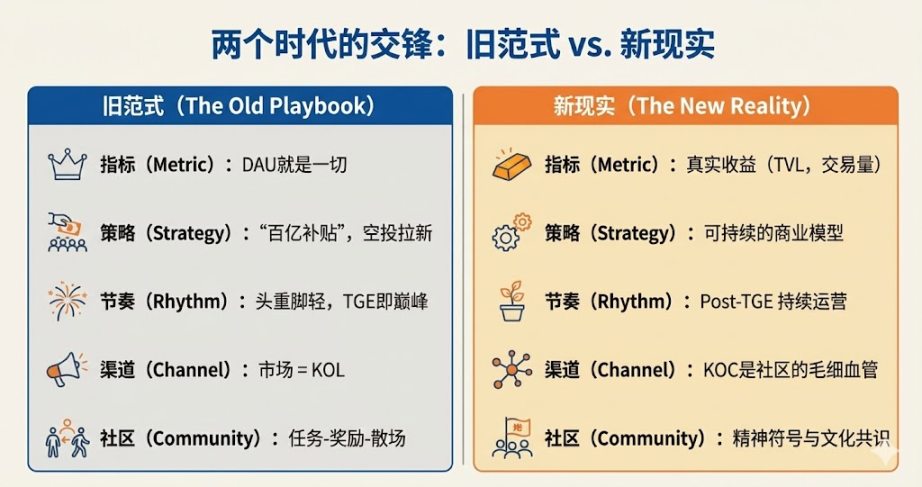 但 2025 的残酷也在这里:活动预期越走向务实,注意力周期越被压缩,新项目的“新鲜期”短得离谱。一旦 TGE 后,市场对项目的关注度就急剧下降,于是项目方把资源集中在 Pre-TGE 的启动和冲刺上,TGE 之后的持续运营被长期低估,Post-TGE 逐渐变成空心地带;TGE 之后有没有持续在做事、有没有持续活跃,用户是有感知的,但现实是,能在 listing 之后还保持活跃状态的项目并不多,一方面是因为有持续的刚需商业模型的项目很有限,另一方面项目方也往往不太重视 TGE 后的持续运营,一旦上币后进入沉默期,用户流失之后再把他们拉回来就会更难、更贵——这是 2025 留下的警示,也是 2026 必须正面解决的课题。