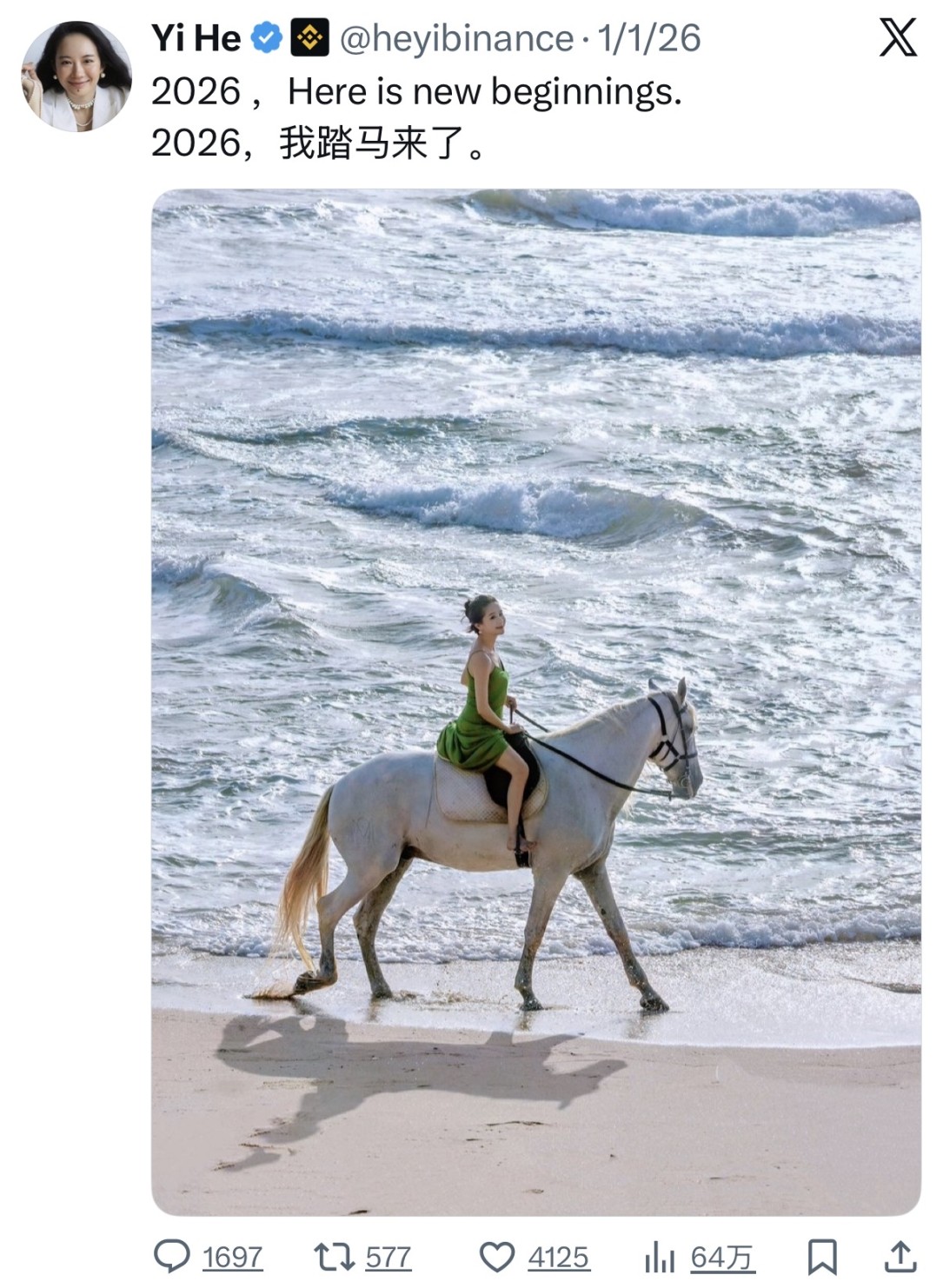 这可不是一句粗口,而是 1 月 8 日币安 Alpha 上线新币的名字,灵感来自币安联席 CEO 何一的新年推文。因为 2026 年春节后是马年,「我踏马来了」带着一丝谐音梗的幽默横空出世,上线后市值从 400 万美元一路狂奔到 1800 万美元。