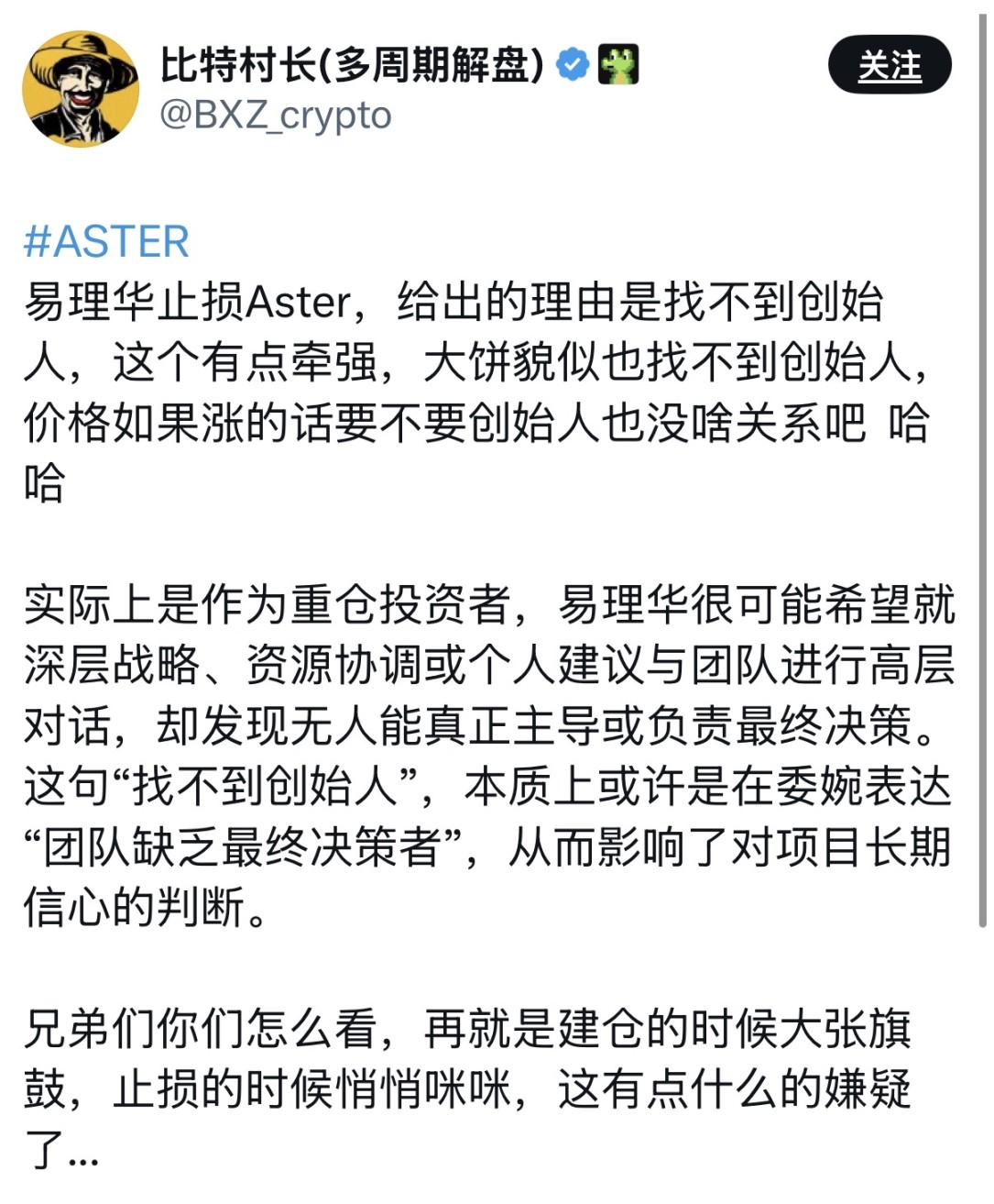 1 月 5 日,Liquid Capital 创始人 Jack Yi 发布了一条「寻人启事」式的推文,核心意思是:我看好的 Aster 项目让我「止损」了,最头疼的是,我居然联系不上这个团队的创始人。
