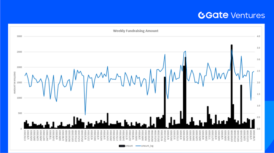 Total weekly fundraising rose to $288.9M for the 3rd week of Jan-2026, an increase of 5% compared to the week prior.