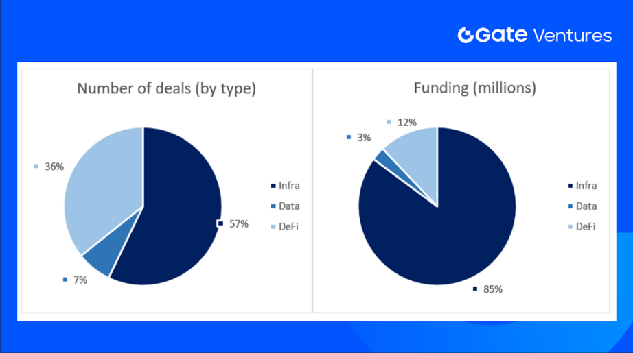 The number of deals closed in the previous week was 14, with Infra having 8 deals, representing 57% of the total number of deals. Meanwhile, DeFi had 5 deals (37%), and Data had 1 deal (7%).